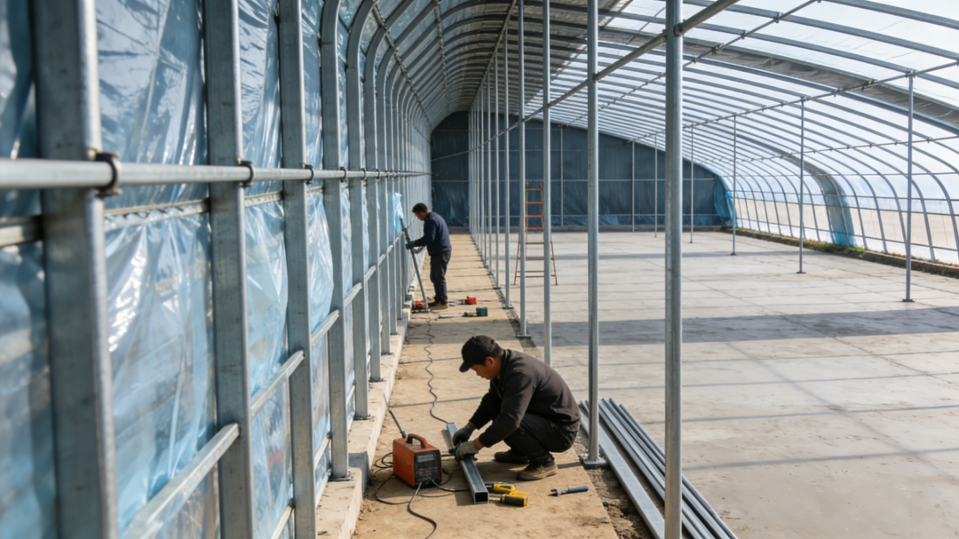 很多种植户贪便宜选劣质钢管,用1-2年就生锈、变形,后期维修成本比新棚还高!其实选材质要结合种植品类:种蔬菜、叶菜类,选热镀锌钢管(耐腐蚀、抗老化,能用15年以上);种花卉、育苗,可搭配PC阳光板(透光性好,保温性强,无惧极端天气),性价比远高于劣质材质。